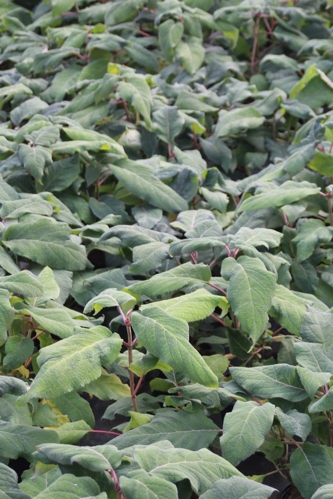 De bloemschermen zijn ook zeer groot, de bloemen zijn paars van kleur met witte randbloemen.