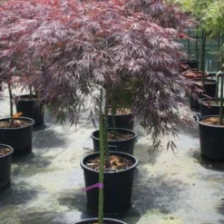 Acer palmatum ‘Beni-komachi’ is een smalbladige Japanse Esdoorn met kersrood voorjaarsblad, later naar groen verkleurend.